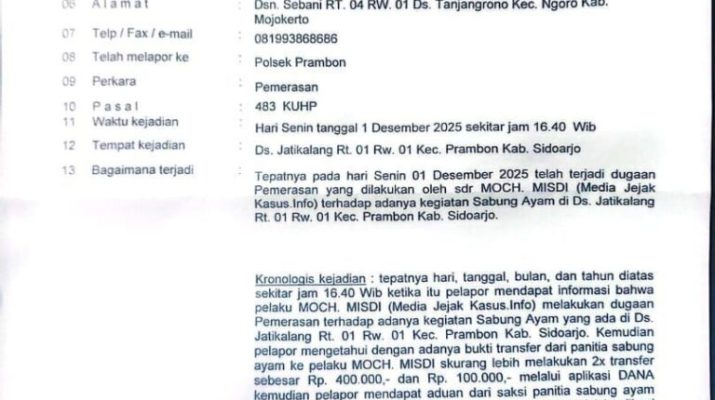 SIDOARJOII, BA.Org. Aroma busuk praktik judi sabung ayam di wilayah Kecamatan Prambon kian menyengat. Bukan lagi sekadar bisik-bisik warung kopi, namun mulai menyeruak ke