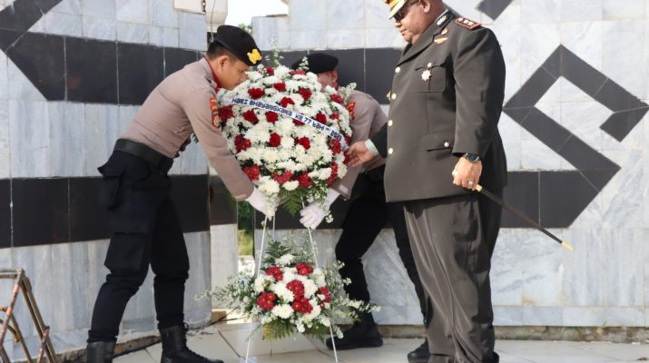 TULANG BAWANG, BERITA AKTUAL. Menyambut Hari Bhayangkara Ke-77 tahun 2023, yang acara puncaknya diperingati setiap tanggal 01 Juli, Polres Tulang Bawang, Polda Lampung, menggelar Upacara Ziarah dan Tabur Bunga.