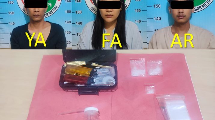 METRO, BERITAAKTUAL. Polres Metro Polda Lampung, Tim Opsnal Satresnarkoba Polres Metro berhasil bekuk 3 orang penyalahguna narkoba jenis sabu masing-masing berinisial AR (22Th), YA (37 Th) dan FA (32 Th), Di ketahui laki-laki berinisial YA (37 Th) dan seorang Wanita berinisial FA (32Th) merupakan resedivis atas kasus yang sama .