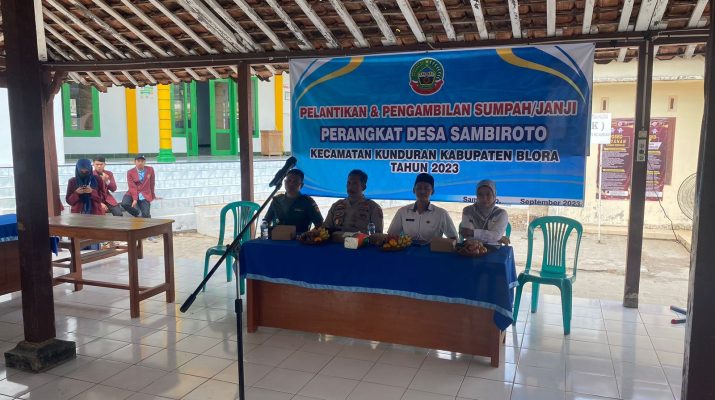 BELORA, BERITA AKTUAL. Meski menuai pro dan kontra dalam seleksi Penjaringan dan Penyaringan Perangkat Desa (Perades) Sambiroto Kecamatan Kunduran Kabupaten Blora, Sukarno selaku Kepala Desa (Kades) Sambiroto tetap melaksanakan pelantikan Perangkat Desa, Rabu (13/09/2023).